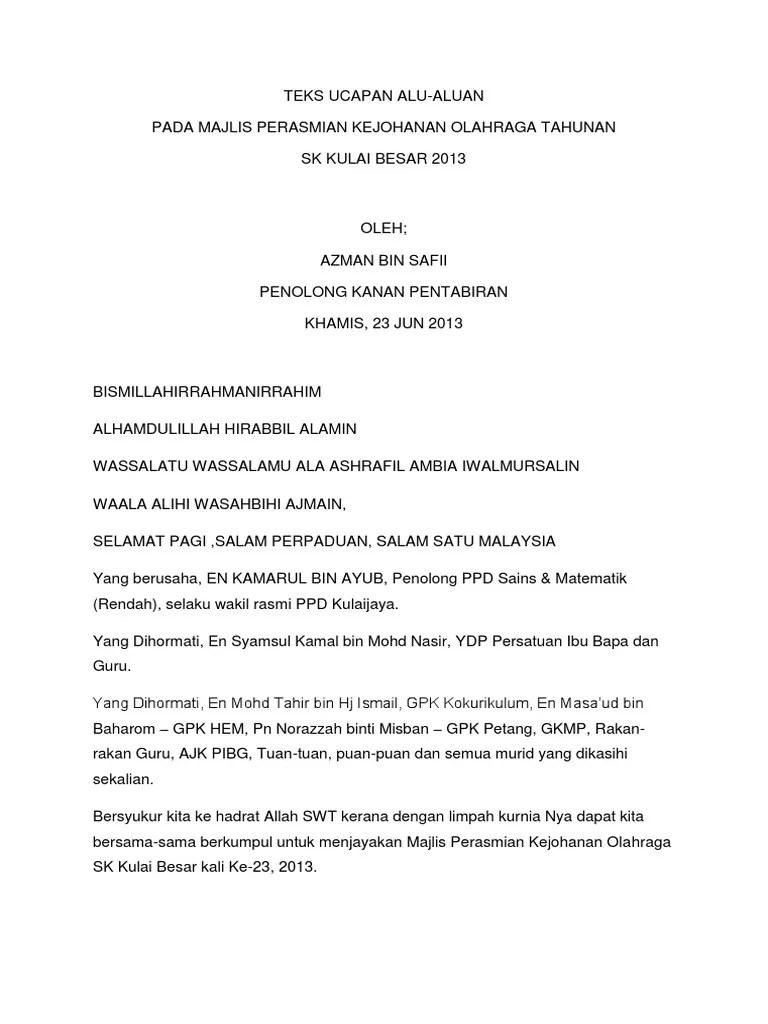 Tazkirah adab guru dan murid huraian oleh lebai kampung. Contoh teks ucapan alu aluan contoh teks ucapan majlis makan malam dan format ringkas teks ucapan pengacara majlis makan malam. Contoh teks ucapan ringkas weeepsa tirai ucapan pada hari ini dimulakan dengan ucapan alu aluan . Para hadirin yang saya hormati. Sk sungai bedaun raikan sambutan tahun baru cina jpwpl sana sini berita rasmi jabatan pendidikan wp labuan. Meneruskan ucapan aluan ini, izinkan saya mengucapkan selamat datang kepada yang berhormat datuk joseph entulu anak belaun, menteri di.